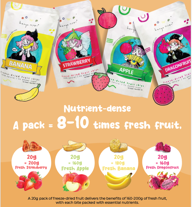 Fruits Ingredients : Strawberry (100%) / Banana (100%)/ Apple (100%)/ Dreagonfruit (100%)
