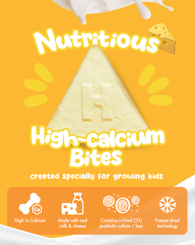 Milky Bites Ingredients : Cheese Sauce (Cow's milk)90%, Trehalose, Frutooligosaccharides, pectic, Bifidobacterium subsp. Lactis HN019 (Addition amount not less than 1 *106 CFU/g)